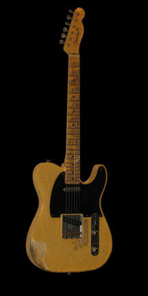 Features include a lightweight ash body with a Nocaster® Blonde lacquer finish given a heavily worn “Heavy Relic” treatment, tinted one-piece maple neck with ’57 soft V shape, maple fingerboard with 9.5” radius and 6105 frets, vintage-design 1950s Telecaster pickups, three-way pickup switch with modern wiring, single-ply black Bakelite pickguard, vintage-style hardware, center pocket tweed case and certificate of authenticity.
