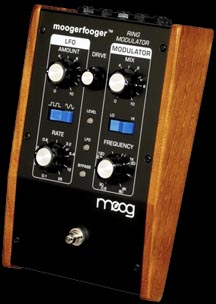 A ring modulator produces sum and difference frequencies between the audio input and a carrier oscillator. The ring modulator's LFO can be used to modulate the carrier frequency. The moogerfooger ring modulator can create effects ranging from subtle tremolo to harmonically rich distortion, gong-like sounds, sweeps, swoops, and divebombs. It can be subtle, or outlandish in it's use - you decide!